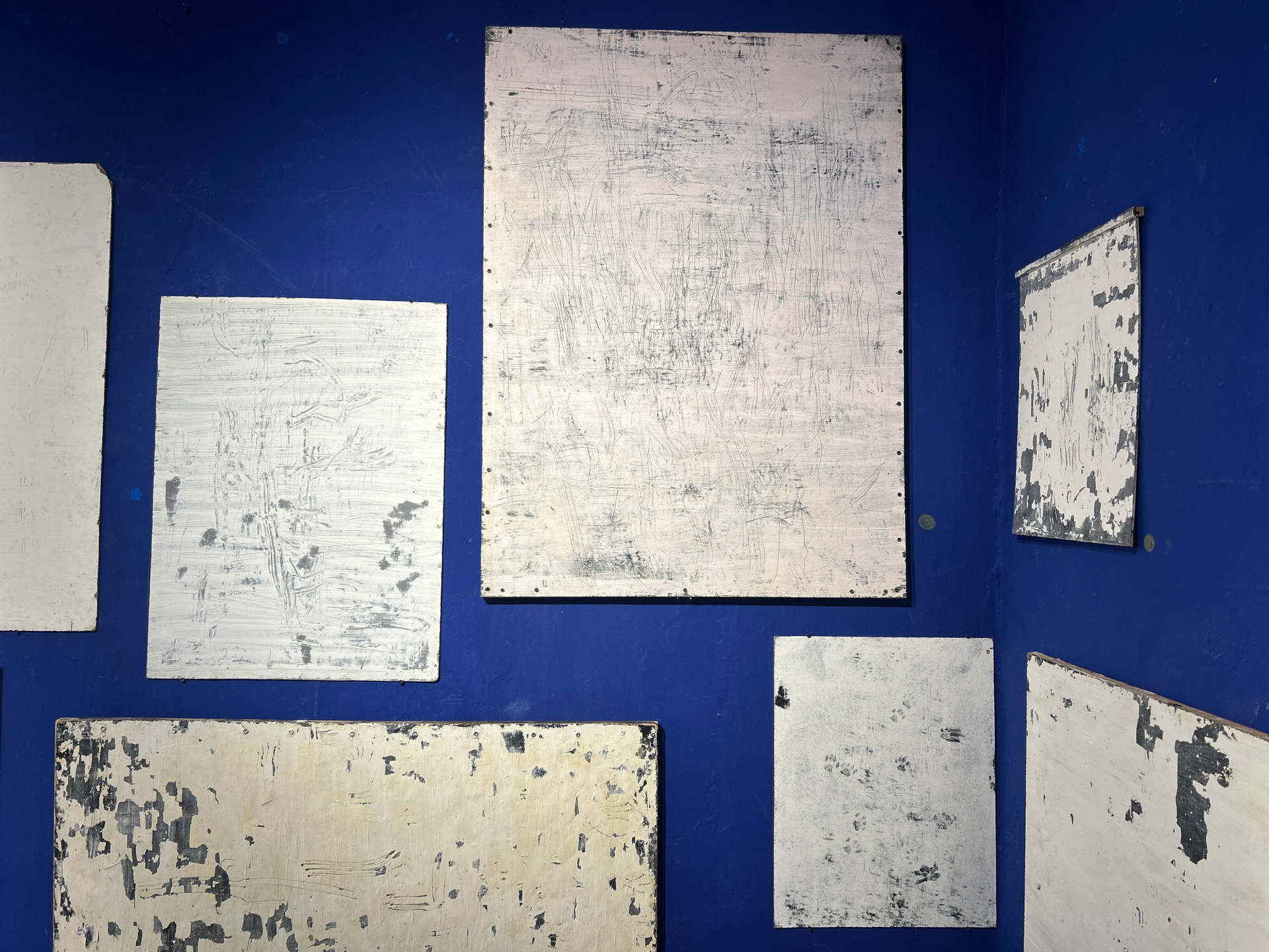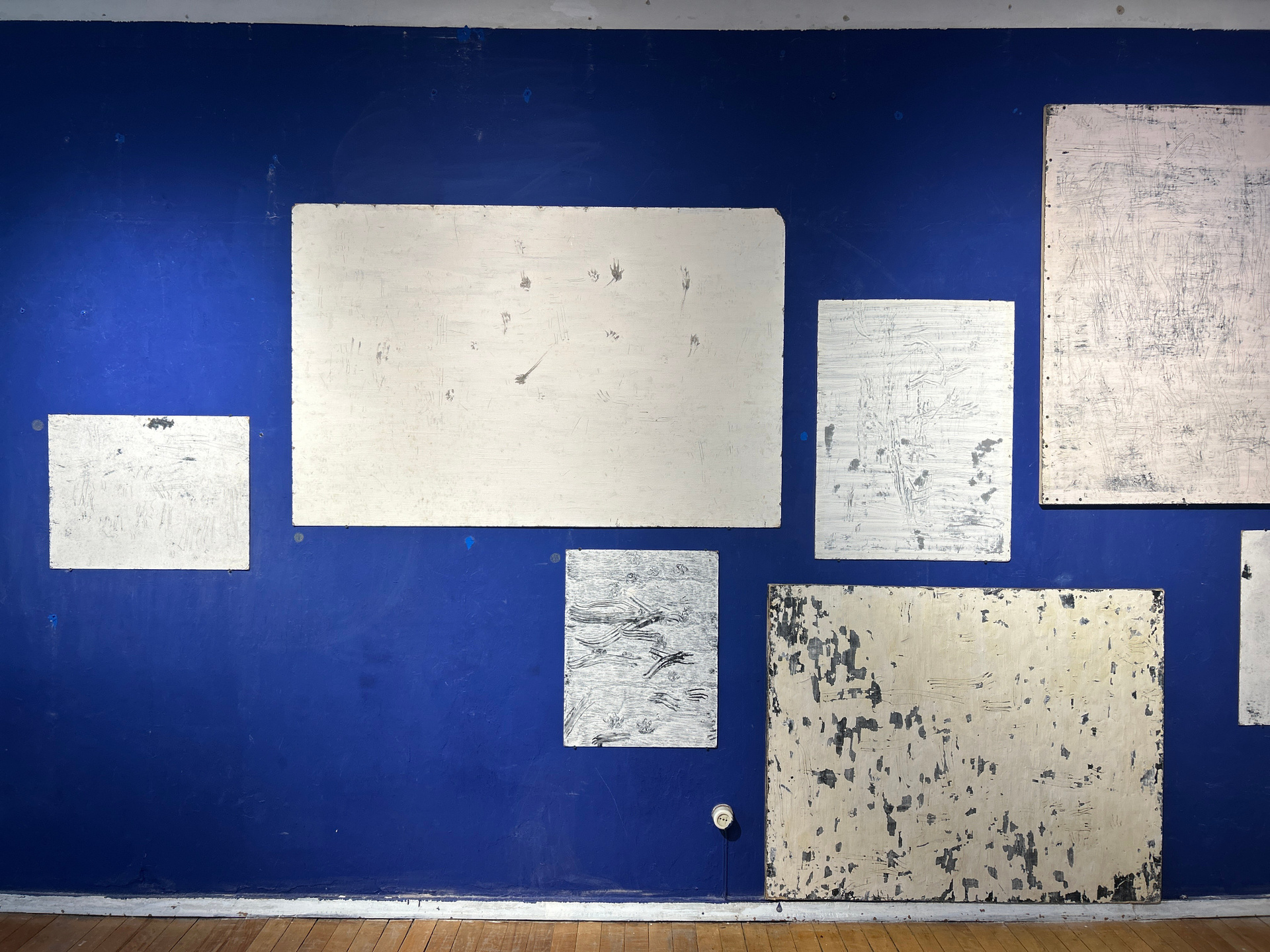 С 2019 года они начали активно «работать» под менторством Евгении, создавая графические абстракции преимущественно в технике «расцарапки». Художница стала готовить для них грунтованные планшеты из оргалита, устанавливая их под наклоном к стене. Коты бегали по этим поверхностям, оставляя следы-царапины, которые в процессе накапливались, превращаясь в сложные графические структуры. Художница рассказывает, что коты используют пять технических приёмов: когти по сухой поверхности, когти по сырой поверхности, отпечатки лап, слизывание меловой побелки, стирание животом.
