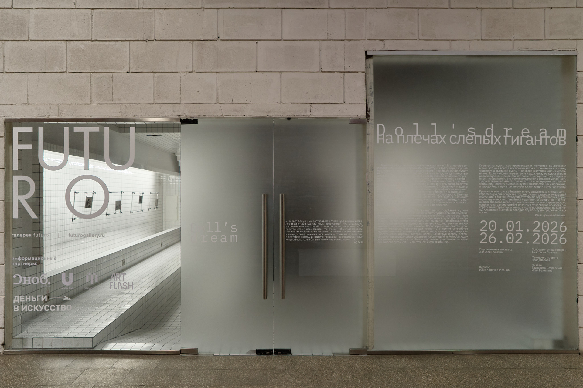 персональная выставка Алексея Громова в галерее FUTURO. Проект имитирует язык ретроспективной выставки в квазивселенной, где художником выступает кукла. В пространстве галереи разворачивается мысленный эксперимент, использующий институциональную критику как метод. Его задача — смоделировать ситуацию, в которой создатель и произведение меняются местами, а вопрос «кто есть художник?» доводится до предельного напряжения. Кукла становится автором, а сама квазивселенная собирается из артефактов, обломков и помех, сквозь которые проступает «сломанный язык» нашей реальности.